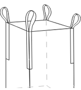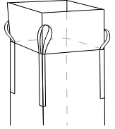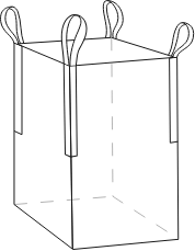São construídos com 3 telas. Uma que percorre todo o comprimento e base do big bag, ficando em formato de “U”.